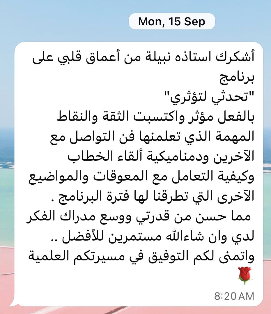 مكانكِ هنا اذا كنتِ جاهزة لأن توظّفي صوتِك وتشاركي أفكارك مع العالم بثقة ووضوح، وأريحية تامة.